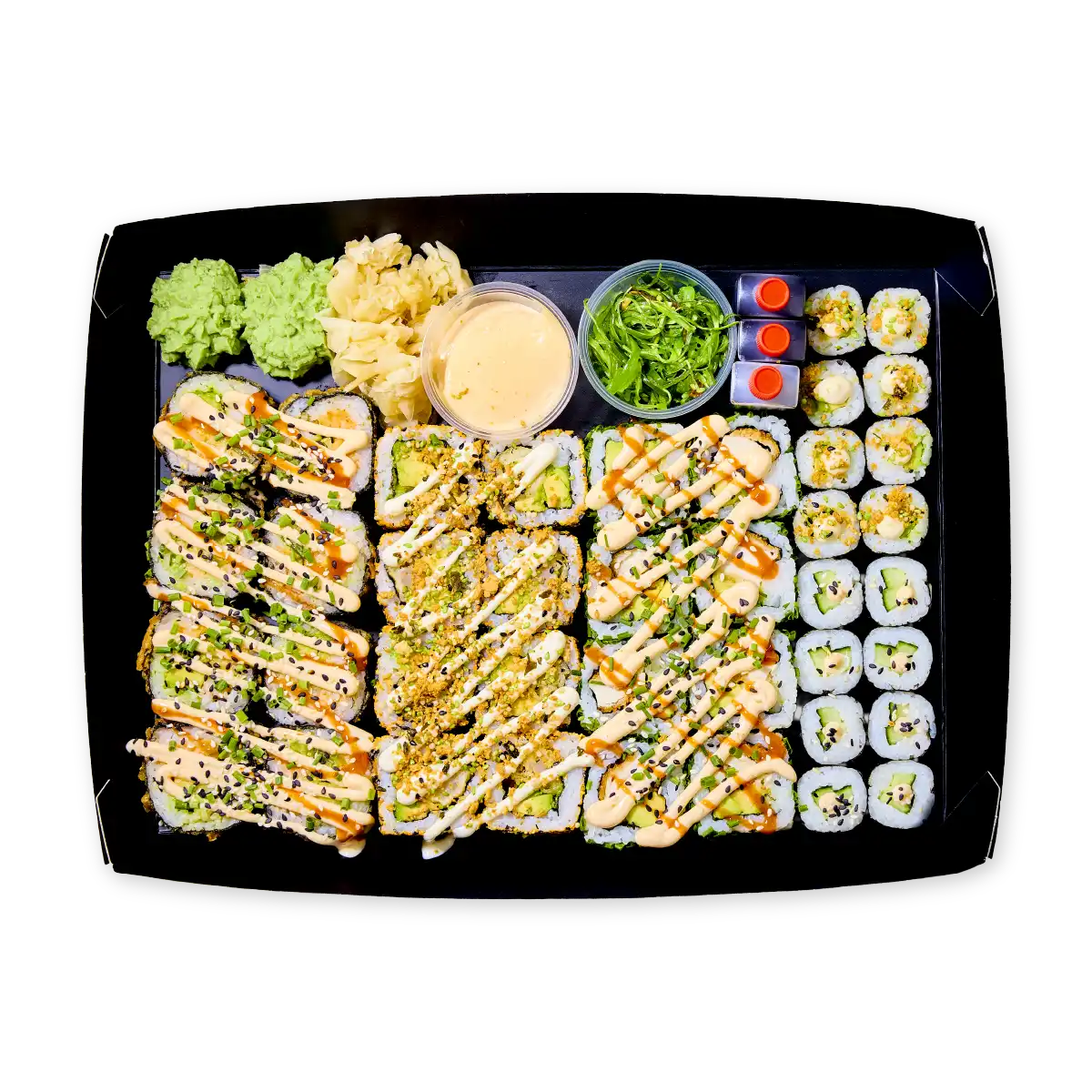 Fagur sushi bakki með 40 blönduðum maki bitum sem eru allir eldaðir og bragðlaukana.